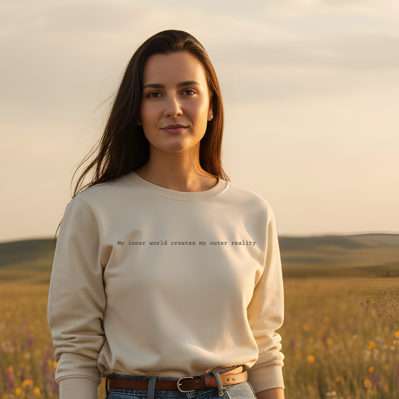 The “My Inner World Creates My Outer Reality” sweatshirt is a minimalist spiritual statement piece designed for those committed to conscious living and personal growth. Featuring clean, text-only typography, this affirmation sweatshirt reflects the powerful connection between mindset, belief, and lived experience.